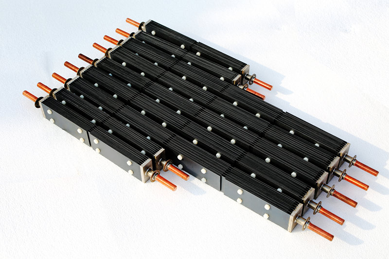 3、可進步電流密度。隔閡法出產氯堿中,石墨陽極的作業(yè)電流密度為8A/dm2,鈦陽極可成倍地添加,達17A/dm2,這樣在電解廠房、電解槽相同的條件下,產值可添加1倍,進步了單槽出產能力,有效地進步了勞動出產功率。在高作業(yè)電流密度下進行電解時,運用鈦陽極比較適合。